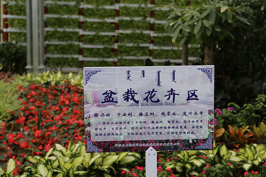 該智能溫室大棚占地約6000平方米,分為一號廳和二號廳。其中一號廳是新建的有錯層的玻璃溫室,分為盆栽花卉、盆栽果樹區、沙生植物區、熱帶風情區、家庭園藝區等功能區。二號廳由舊溫室改造而成,頂部為陽光板,四周立面為玻璃,配置了智能控制系統,有無土栽培區、育苗區、采栽體驗區等功能區。智能溫室全部配備了內、外保溫系統,冬季保溫,比普通溫室更節能。溫棚內移動苗床一次育苗30萬株,可供給巴彥霍德406座溫棚,一定程度上帶動了農民增收。不論是熱帶植物、水果還是沙漠植物,在這里你可以一覽無余,一年四季感受綠色勃勃生機。