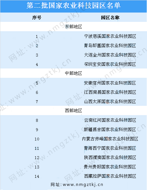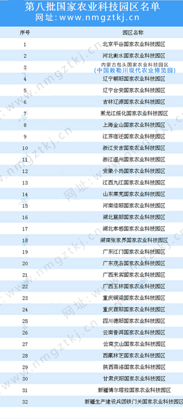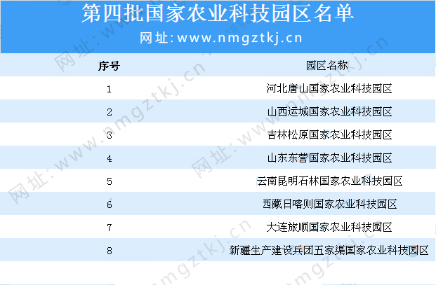截止目前,我國(guó)已公布了8批國(guó)家農(nóng)業(yè)科技園區(qū)名單,園區(qū)累計(jì)達(dá)到200多個(gè),以下是1-8批國(guó)家農(nóng)業(yè)科技園區(qū)名單匯總一覽: